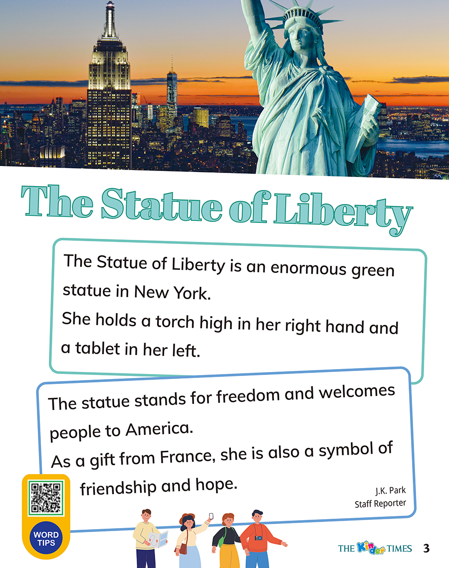 "wordtip" => "enormous 거대한 / statue 동상 / torch 횃불 / stand for ~을 상징하다 / welcome 환영하다 / symbol 상징 / friendship 우정 / hope 희망",