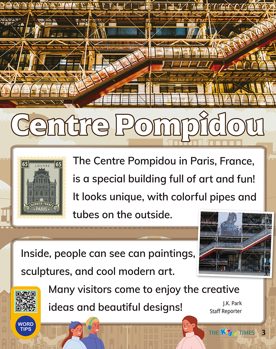 "context_kr" => "프랑스 파리의 퐁피두 센터는 예술과 재미로 가득한 특별한 건물이에요!