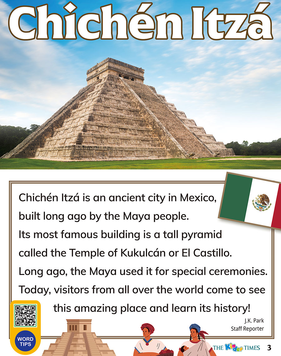 "content" => "Chichén Itzá is an ancient city in Mexico, built long ago by the Maya people.