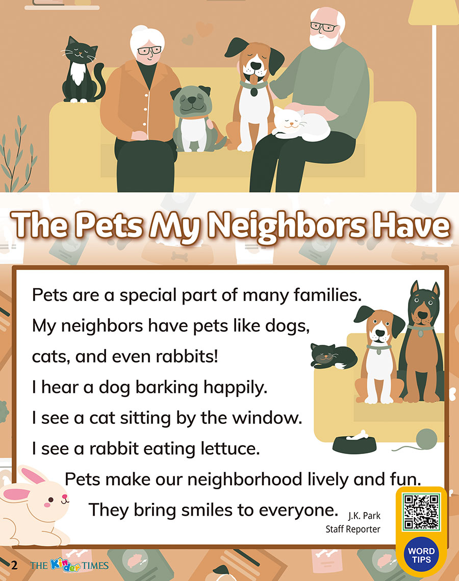 "wordtip" => "pet 반려동물 / neighbor 이웃 / bark 짖다 / happily 신나게 / lettuce 상추 / neighborhood 동네 / lively 활기찬",