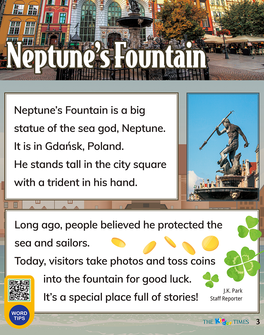 "wordtip" => "fountain 분수 / statue 동상 / god 신 / city square 도시 광장 / trident 삼지창 / protect 지켜주다, 보호하다 / sailor 뱃사람 / toss 던지다",