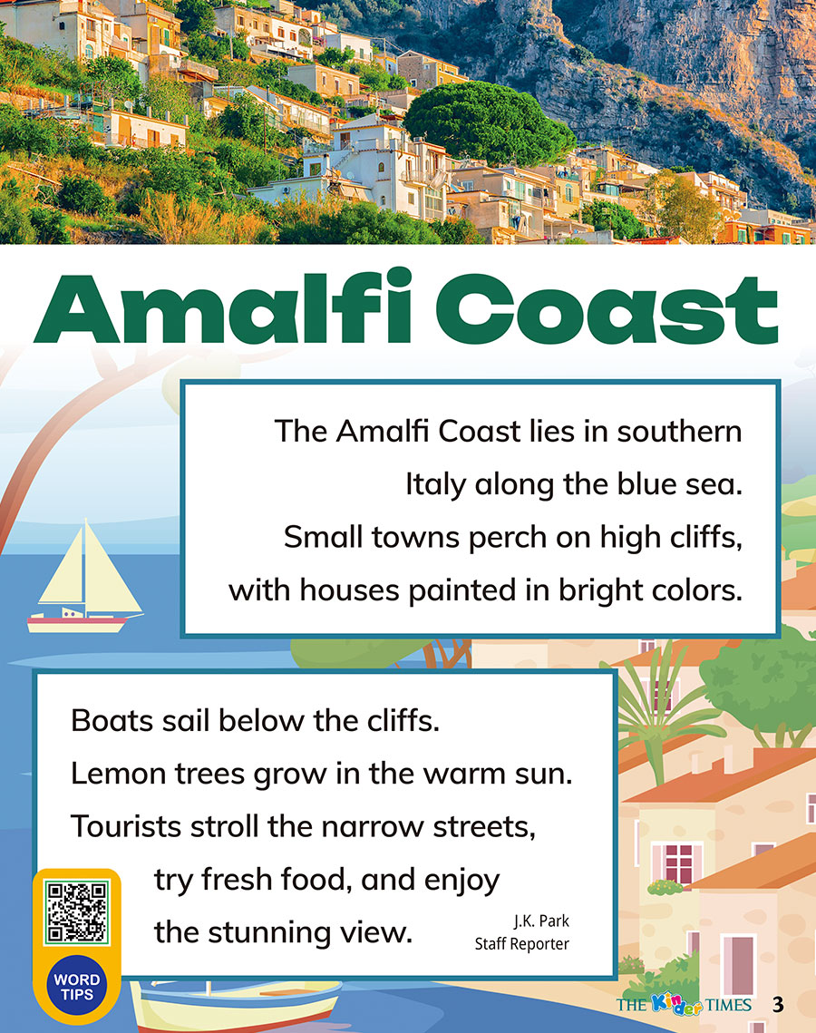 "context_text" => "The Amalfi Coast lies in southern Italy along the blue sea.
